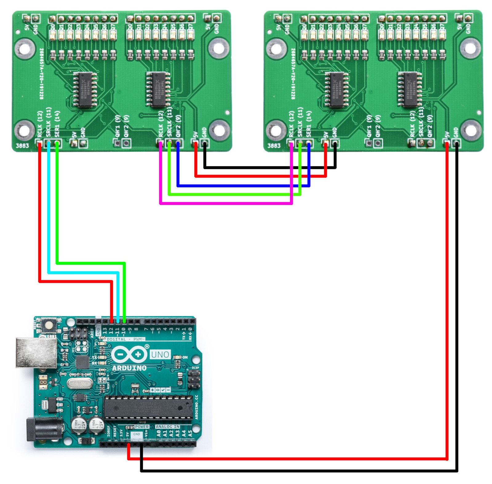 * LEDs attached to each of the outputs of the shift register